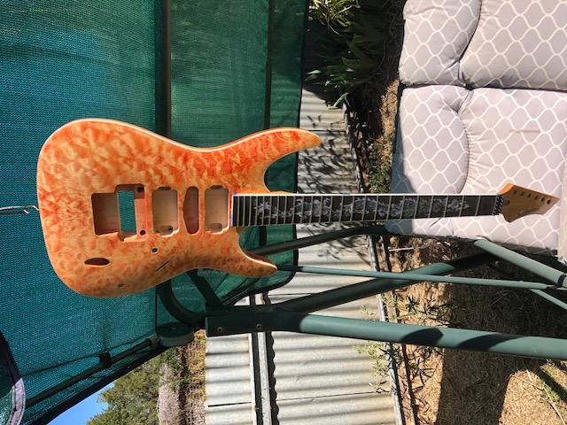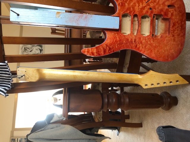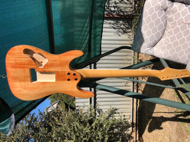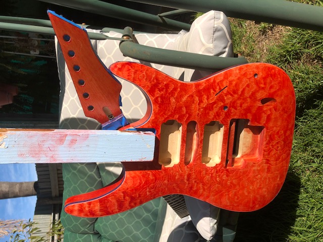 If so, just keep adding more base stain however if you mean a different colour shade darker, welcome to the unpredictable game we are addicted to called kit building. Rarely does a colour scheme in theory end up the same in reality as the timber used will dictate a lot towards final outcome. Your headstock looks more orange than red which could be lighting in that shot, but if it is a different shade or colour it will need more coats than the body to even things up a bit.