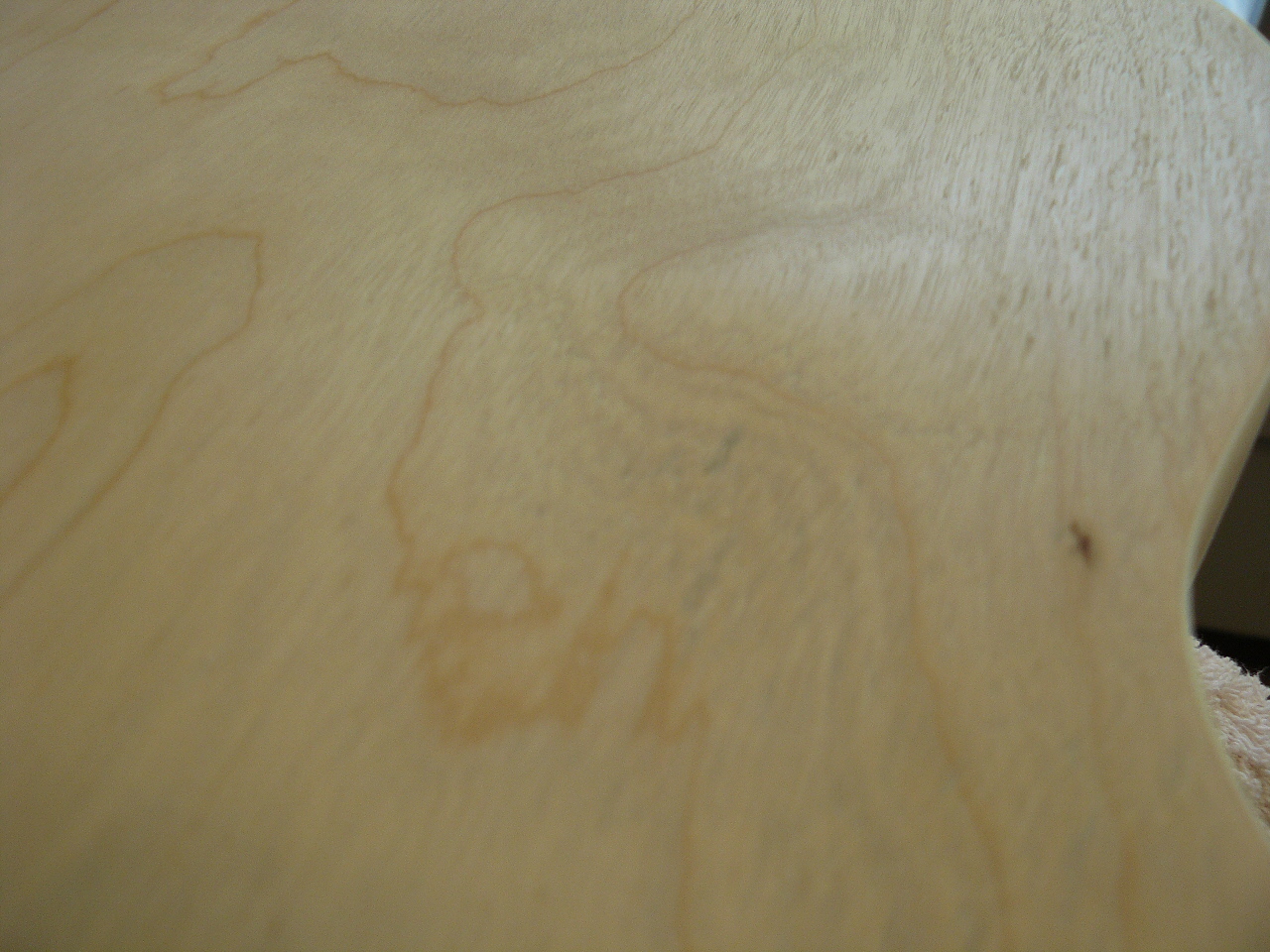 I'm now about halfway through the finish using Crimson Guitars' finishing oil over a water-based wood dye, rather than stain.