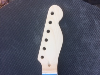 I had to do it and unfortunately you can't practice shaping the headstock. No disasters - bit of rasping and sanding needed to fix the odd ugly corner. That little curve is a real pain - fits the theme pretty well without being an exact tele