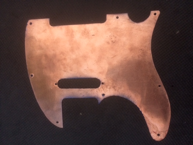 Cut a pick guard out of .3mm copper. Gives me a canvas and shielding. Remember I still have a clear guard and am determined to use it.