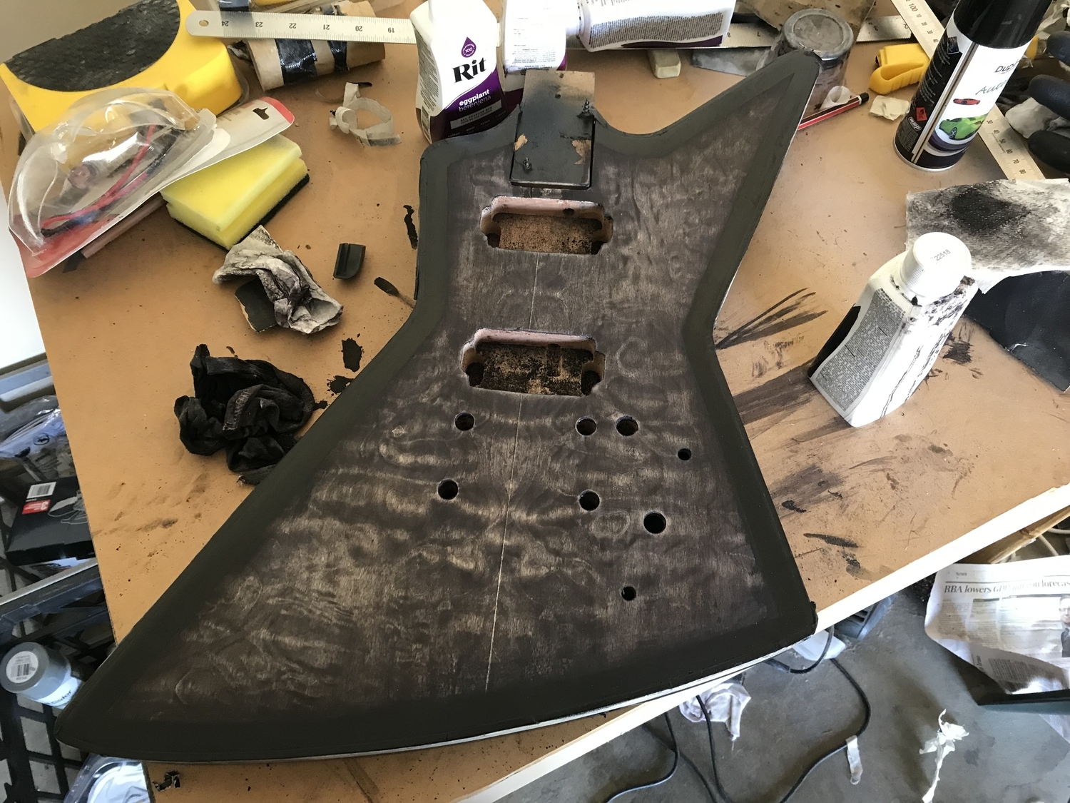 Unfortunately I have had to come to the decision to strip my paint job and start over. I ruined my efforts by accidentally tipping some acetone onto the guitar while on the bench and it ate through certain spots of the paint, creating an ugly look of circular depressions in the paint. Couldn’t live with it.... had to start over.