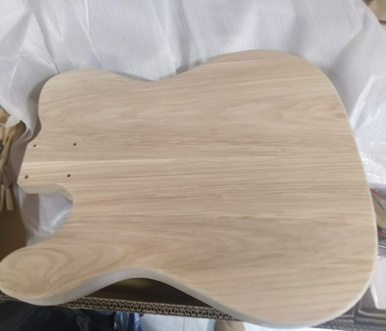 When arrived, I've checked the kit and comes nicely packed. There're no missing parts, the bodie and neck seems fine (neck with 21 frets is for another project).