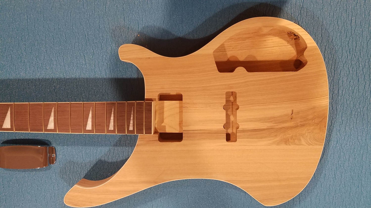 Let's start with the neck....being made from rock maple these don't usually require much effort at all and would suggest a light sanding with 120 grit along the back where your hand rests whilst playing to knock down any splintery bits. If planning to stain body & neck the same colour, best not to sand the neck too much otherwise it gets difficult to match colours as the maple grain is very tight and too much sanding ends up polishing the surface which can repel attempts to soak up enough stain. As the headstock is already pre-shaped you may find some machine marks in the various curves and if you want it looking smooth and showing off the grain these will need to be sanded out otherwise stain will end up accentuating that more than the grain underneath.