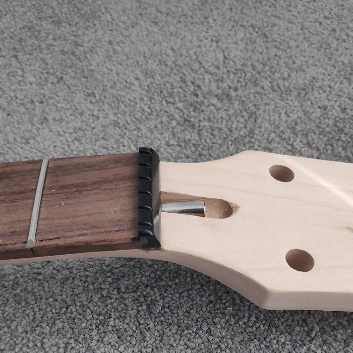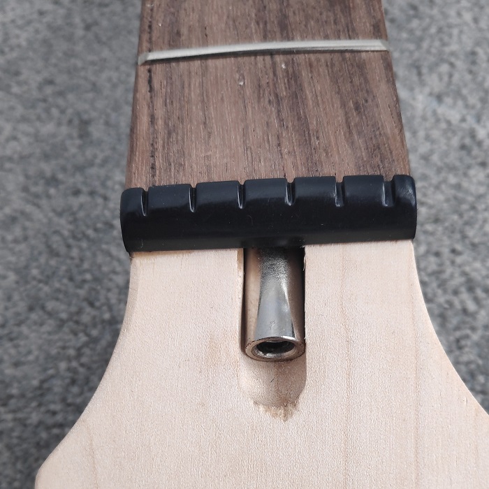 Only thing I'm not quite sure about is the truss rod - it seems to be protruding a fair way from its hole. I've attempted to attach three photos which show this, and how the truss rod cover can't sit flat because the rod is poking out.