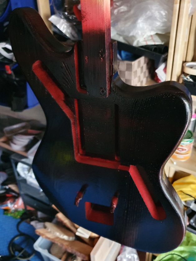 Anyway, the body has had it's sanding sealer, white layer, red layer and now I'm onto black.
