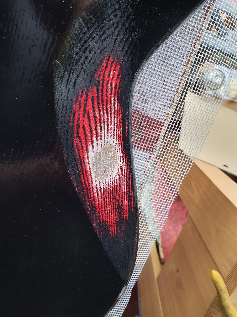 So I've done a little bit of testing on the back, in an inconspicuous area, to see how my idea would work. And it works! The teat area needs a little bit of tidying up (smoothing scratches and cleaning up the bare wood area), but I'm happy with the result and will be starting to work on the front of the guitar soon.