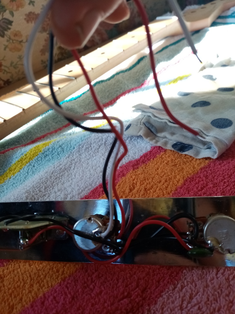 Note that the coloured lines I drew for the pickup wires are not representative of the actual wire colours. They are arbitrary colours just to differentiate them from each other and the rest.