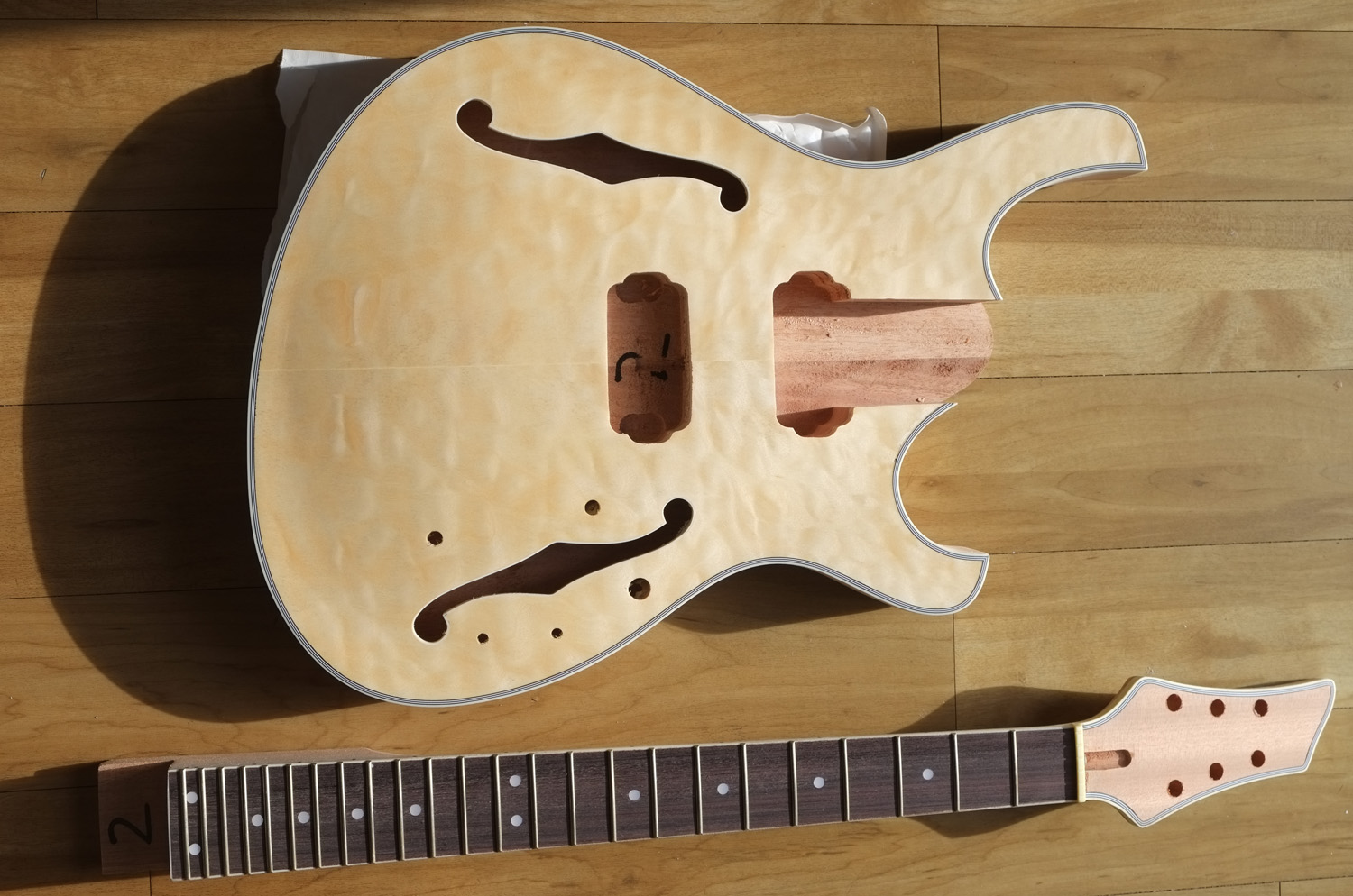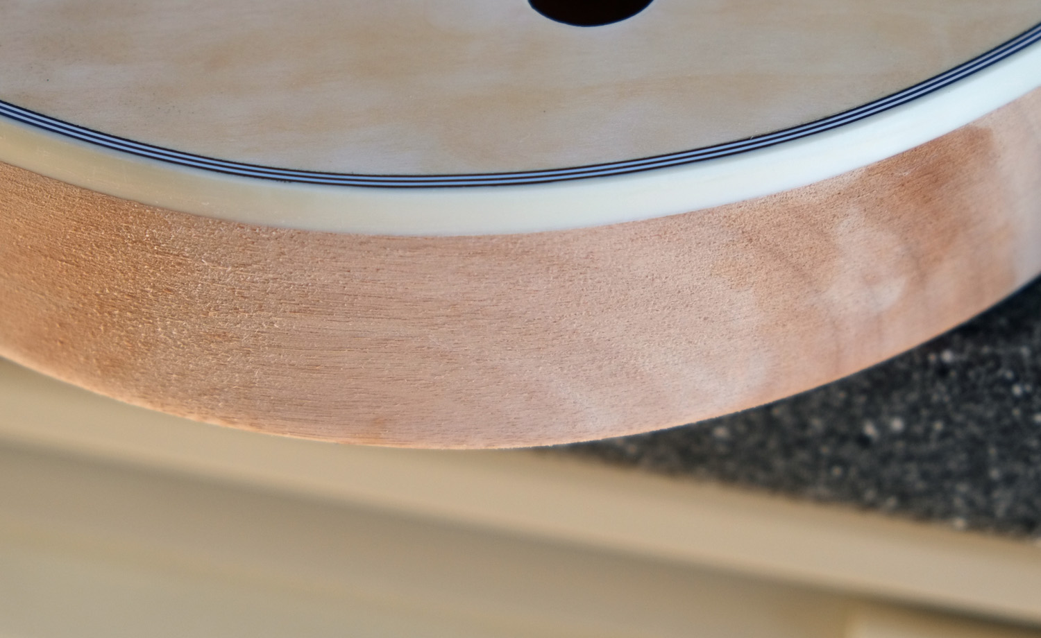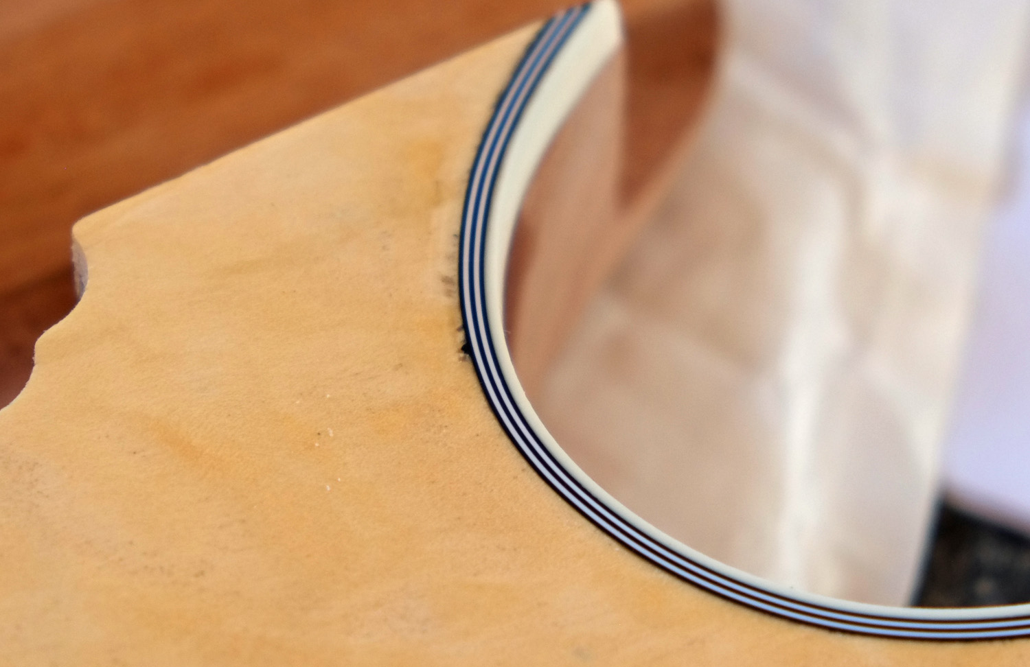 A little bit of a buggar needing to cover the binding on the headstock, and that gap between the ply and the body is huge....