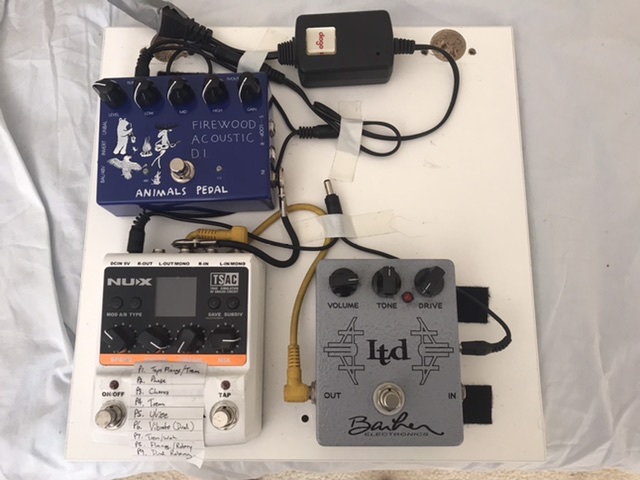 One of the effects of C-19 has been the monthly jam I was going to was put on ice for a while. When we came back so we could meet the C-19 restrictions we been purely acoustic, shedding the drum kit and amps so we could spread out more. Over the last few months I have been creating a simple pedal board for acoustic use. After going through all my old pedals that have been retired from my electric board I ended up with this. The DI is the only thing I’ve bought. And yes, it is mounted on an old IKEA cupboard door.