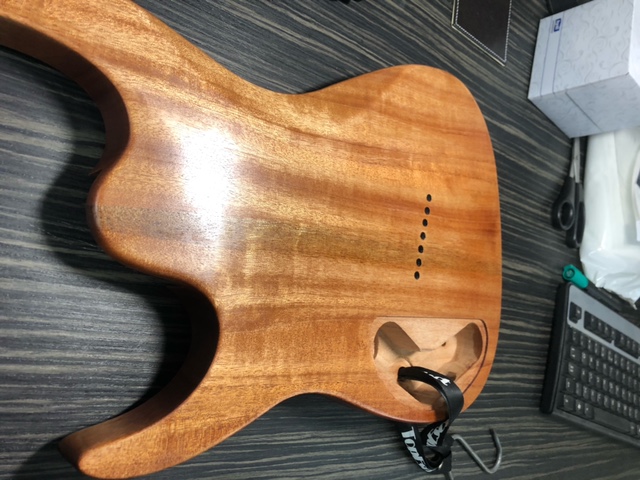 Im doing a very basic natural finish to it, i have used linseed oil for the first few coats until i was happy with the colour and now applying crimson guitars high build guitar oil to shine up