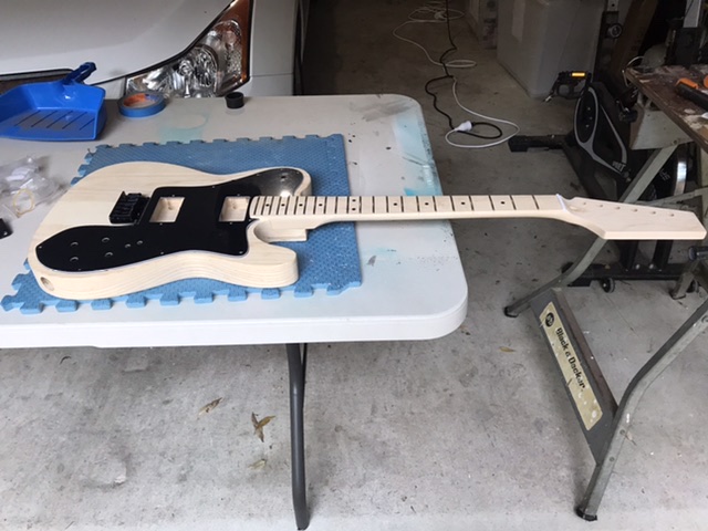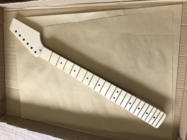 Still working out the details, but now I’ve got it in my possession I can start to work out what I’m going to do. It’s got black hardware, because Adam’s waiting to be resupplied, and with the black pick guard and some black Toneriders, I’m leaning towards a traditional “blackguard” yellow for the body. But I might change my mind still.