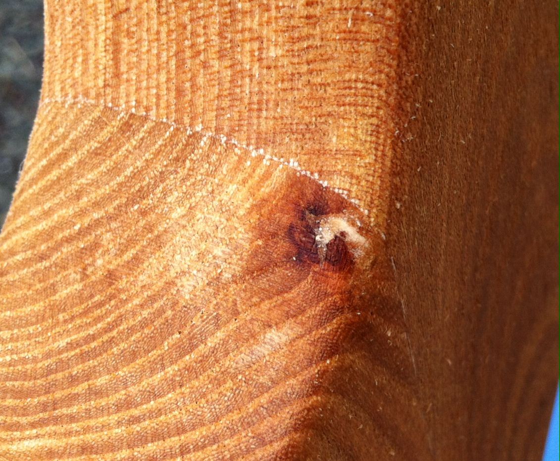 Wet photos to show off the grain....and that blemish/glue spot/filler near the neck pocket on top horn.