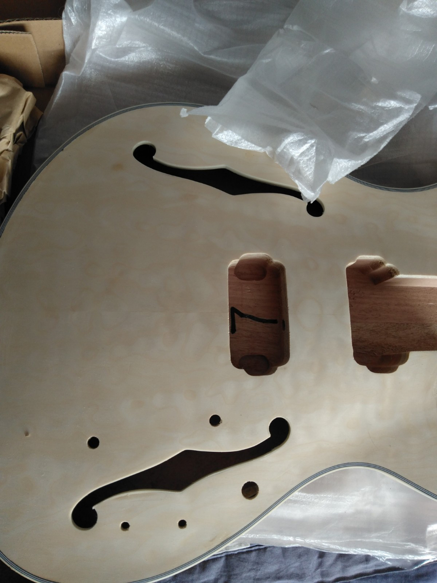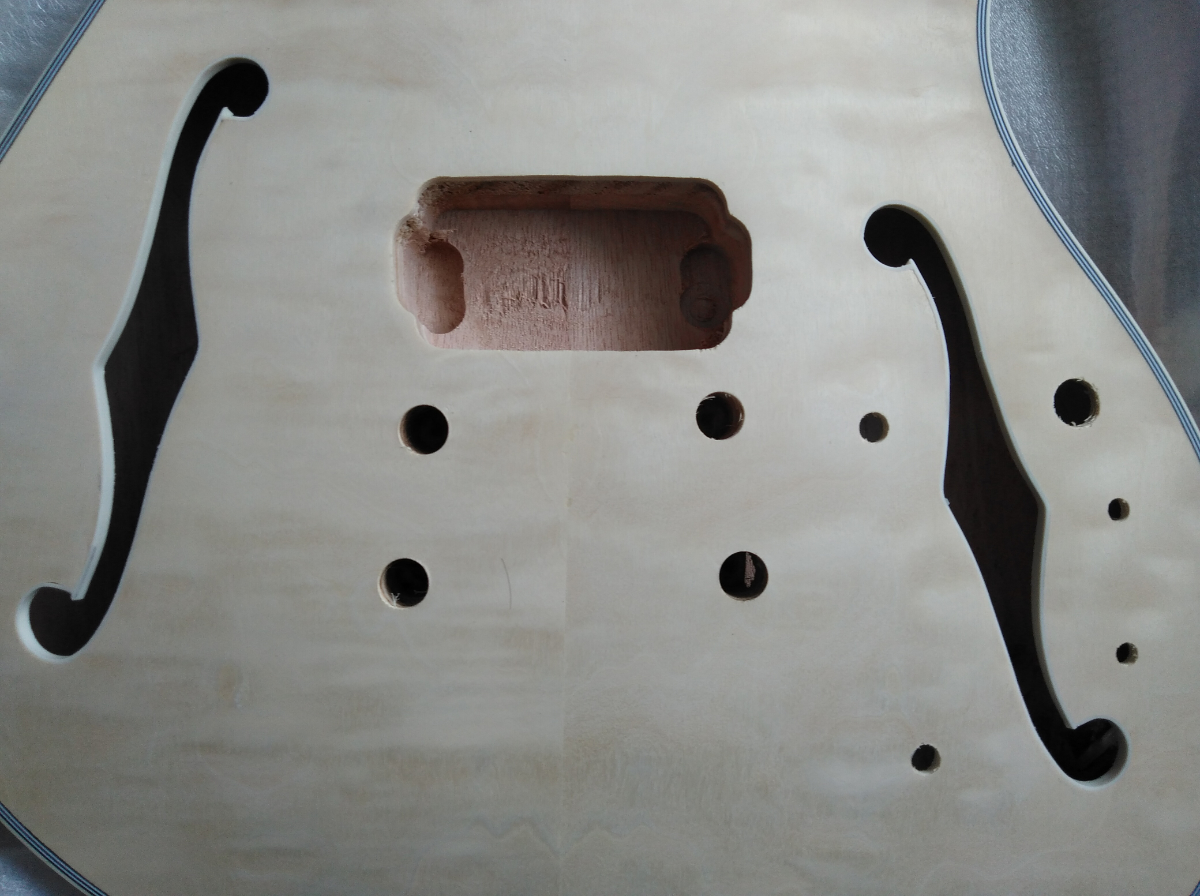 There were no holes for the bridge or stoptail and the gold hardware ranged from 'fresh' to 'old'.