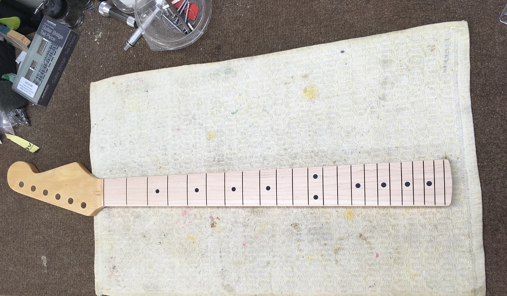 NECK FINISH: It's a maple fretboard, and I'll do a matte finish. I also like that yellowing ting that maple necks get with age. Is there any way to do it with the finish? I've also been reading about people using shoe polish to add that sort of vintage tint...