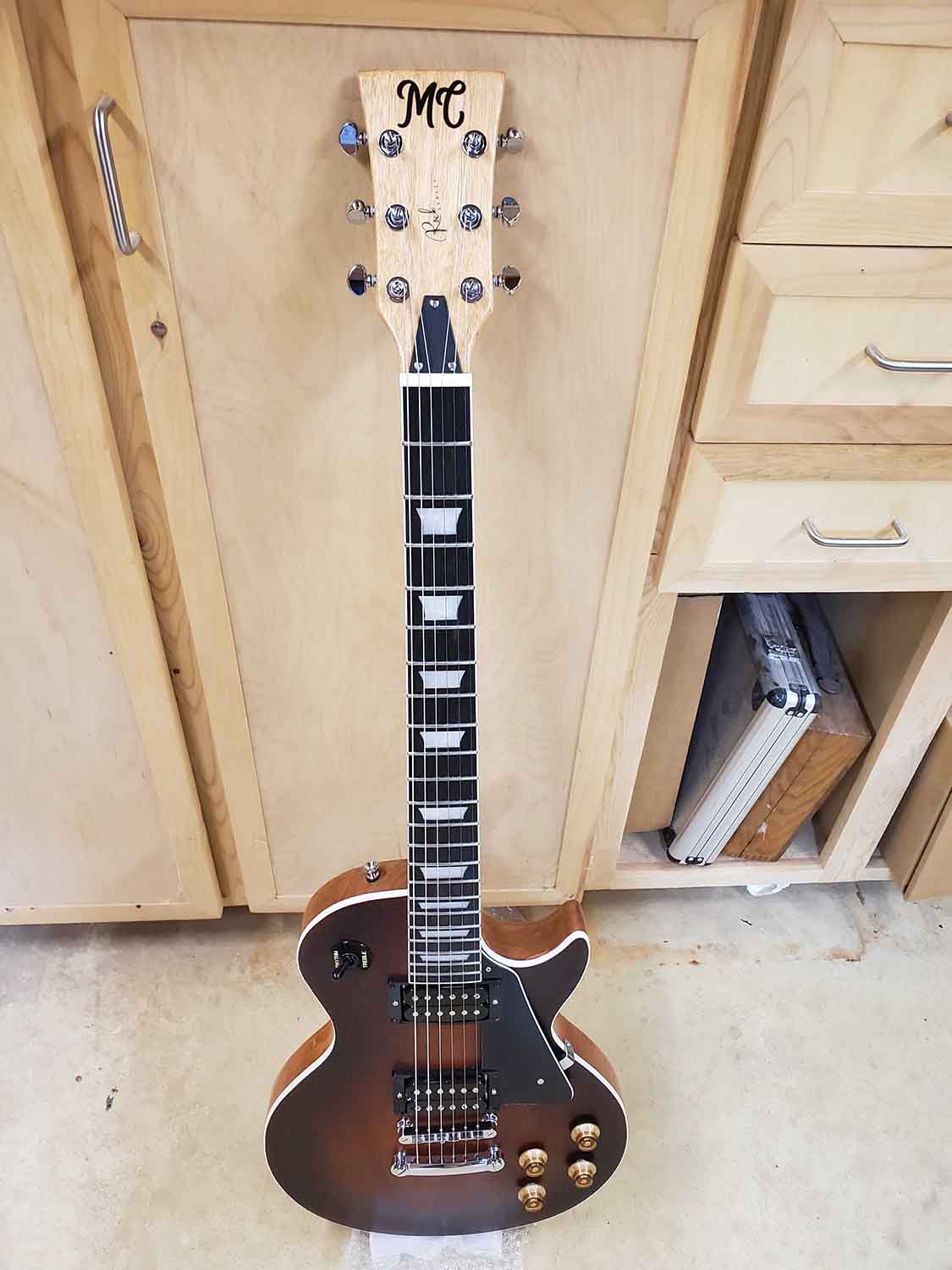 I am an avid woodworker who just started making guitars. Here are a few pics of my first one. I had someone make some decals up for branding.