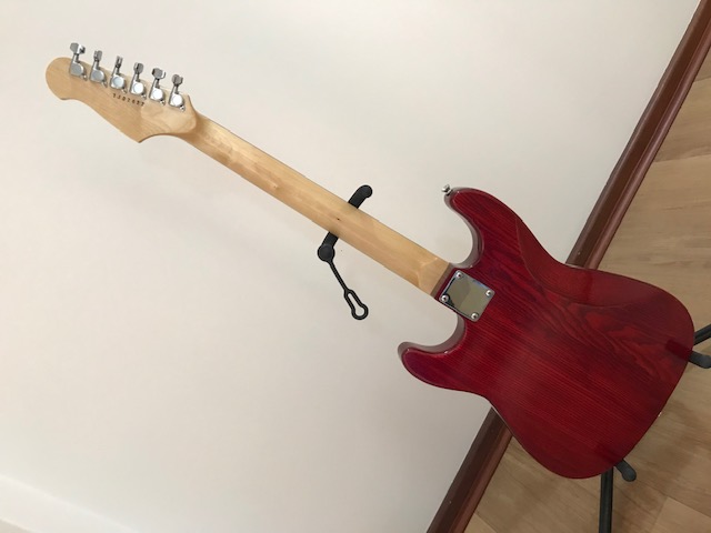 I have just completed a STA-1HT kit. All stock parts. Body has been finished with 1 coat of ebony Timbermate to highlight the grain, stained with red ink, and finished with Tru-oil coats, light sanding etc. I have tried to get a textured finish with the grain. The logo is a vinyl sticker cut with a Cricut Joy. The "serial' on the back of the head stock is stamped, then filled with ebony Timbermate, then sanded back flat before adding the Tru-oil.