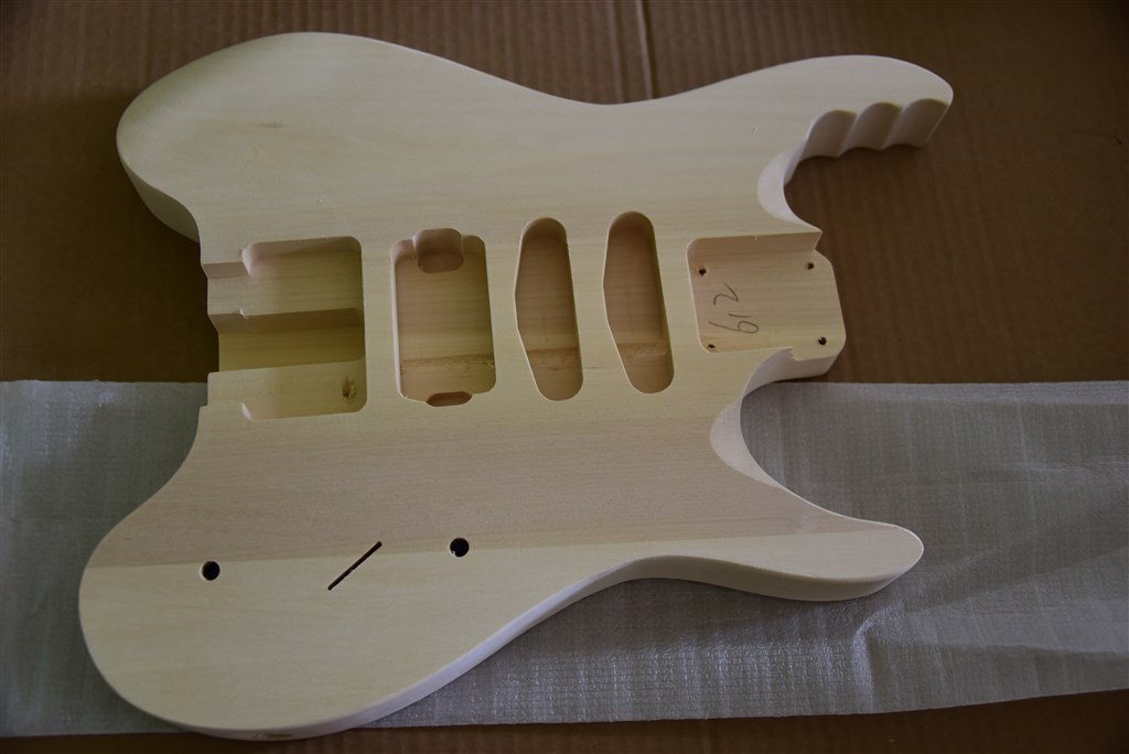 Simple task to get the neck to fit, just scraped off a couple of high points and the neck squeezes in, tight but not overly so. I'll have to check that all the routing is OK, but the pickups & bridge all sit in the pockets but I do need to check the alignments.