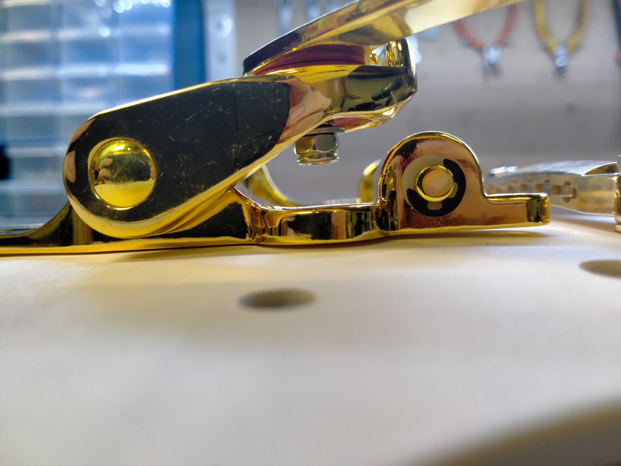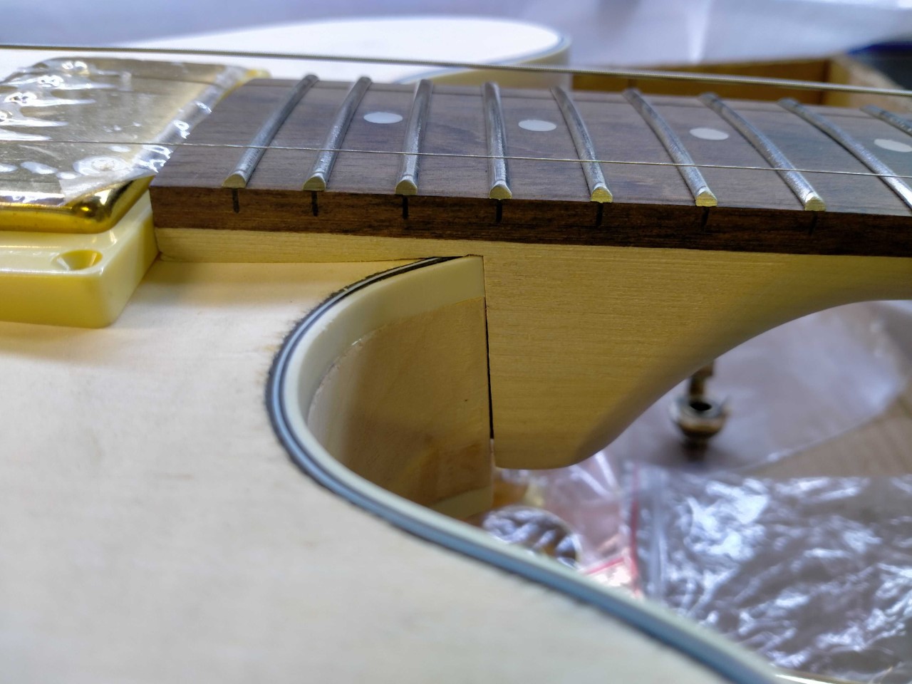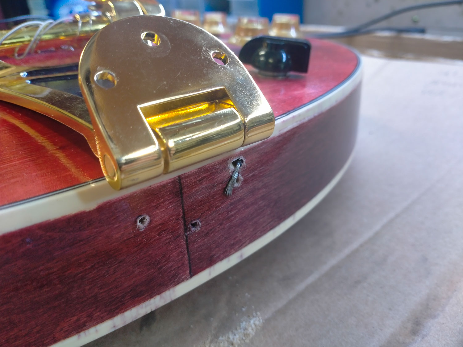 Hardware - I'll be fitting a Bigsby B70 to it. I think I'll bolt it straight on, rather than using a Vibramate.