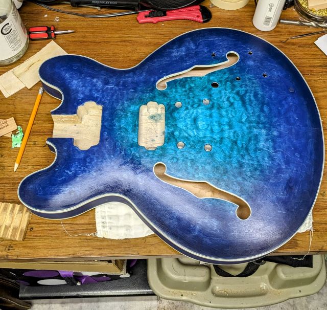 Getting into a semi-hollow for my second build, and adding a burst colour scheme to up the complexity.