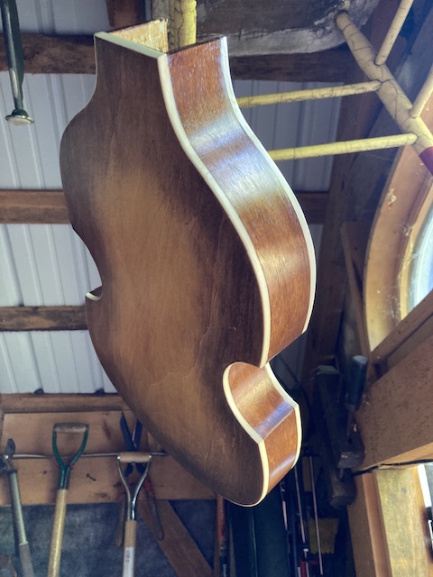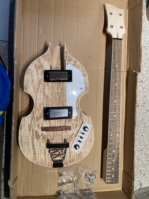 Hello to all on here. Received my Beatle bass a week or so ago (it only took a week to arrive to the White Mountains of New Hampshire!). There were a few QC quirks, as i unfortunately expected, but overall, the body and neck are in good condition. There was some tear out inside the body of the bass from a router, splitting a couple pieces in the plywood. Also, one of the threaded nuts for the tailpiece slid right off the threaded rod, so that whole piece went to the scrap yard.