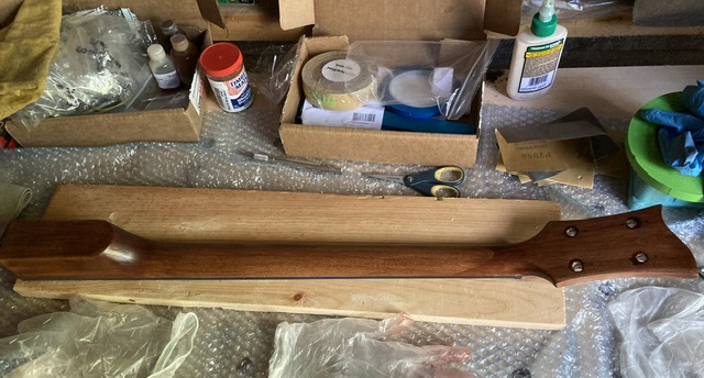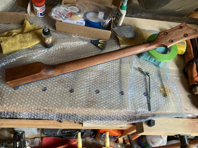 For the moment, I’m going to leave the headstock faceplate stained and see how dark i can get it to hide the dowels, but it’s not super important to me, I’d just rather have tuners that fit the vibe and will stay in tune better than the stock ones.