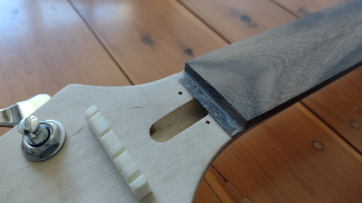 I'd imagine that a drop of super glue will hold the nut in place, however I was thinking if perhaps I should make a little reinforcement just behind the nut, towards the tuners, to create a slot for the nut to rest? (think of a classic fender precision bass nut, for example, it sits in a slot).