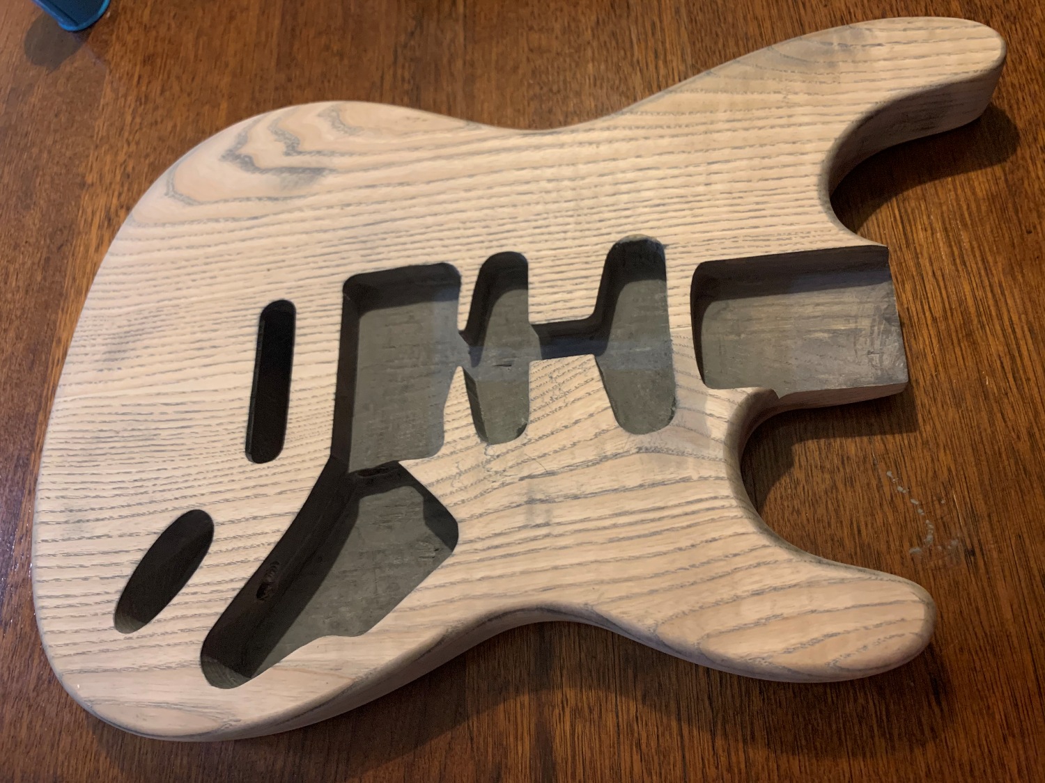 You can also see the extent of the filling in the neck pickup route, which has retained more of the TimberMate than the area around it.