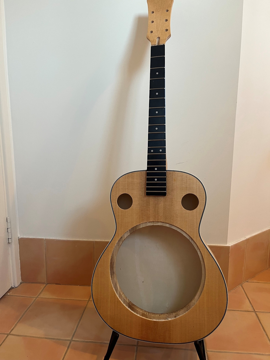 Now is time for that to change.. I’ve begun my own Resonator build. I’ve been an absolute heathen about it though, and I don’t suggest that anyone follow my example of how to build guitars. I wanted to do as little as physically possible to put a kit together. I’ll be using only the gear that came with the kit, and the quickest build I can just to see how it turns out “out of the box” so to speak. Later if I have the inclination - and if even need to - I’ll look at putting some brighter and shinier things on it.