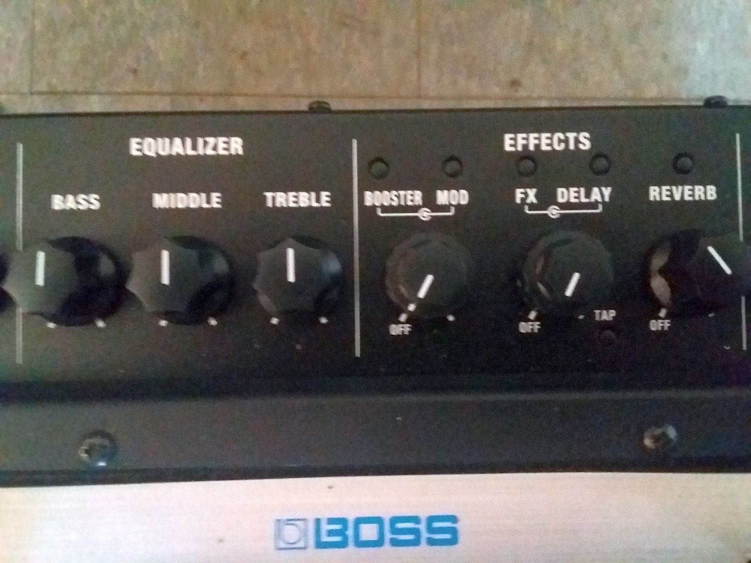 Okay then, let's give the amp a good look-over and see just what we get when we buy one of these, this one is the 1X12 version, that is, it has one 12 inch speaker, I'm not sure exactly what model the speaker is, it appears to be Boss's own design, but it definitely sounds good, here are some pics: