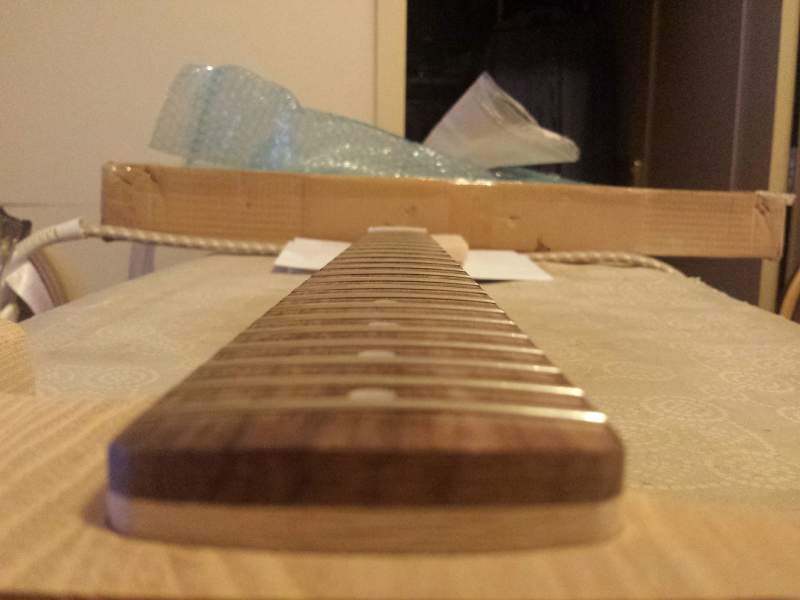 Frets are nicely set, it seems. The fret ends can't be felt at all which is really nice. I also swear there's something pleasing about the smell of rosewood and maple together, damn it's great