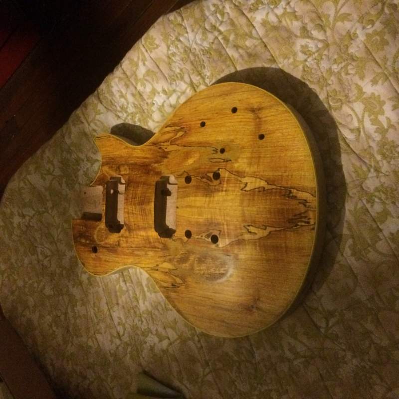 The other issue is that the spalted caps are always very thinly applied to the body of the guitar and if you go too far with your sanding you can expose the wood beneath the cap.