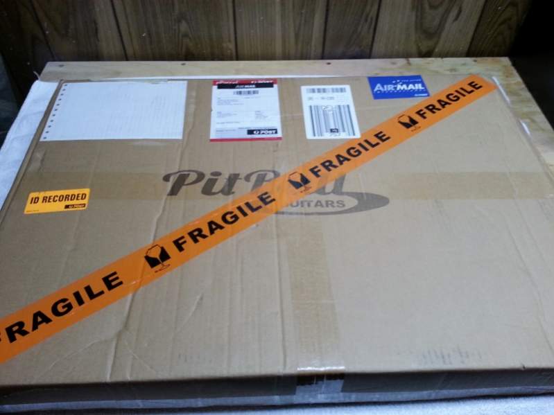 Unboxing: Guitar arrived in a Pit Bull box no damage which was a fear I had since it made the long trip from Australia to Texas.