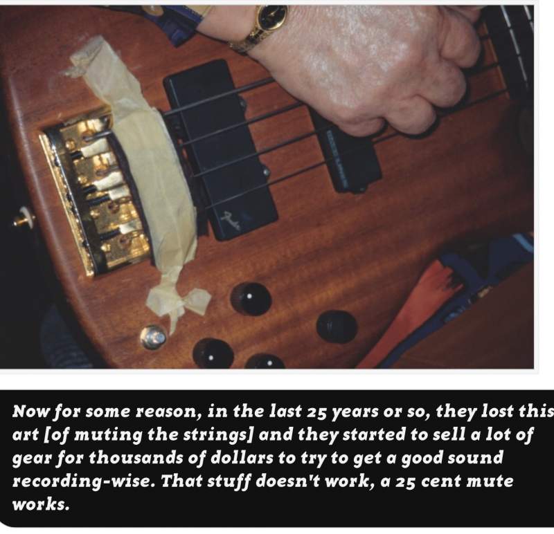 Now for some reason, in the last 25 years or so, they lost this art [of muting the strings] and they started to sell a lot of gear for thousands of dollars to try to get a good sound recording-wise. That stuff doesn't work, a 25 cent mute works.