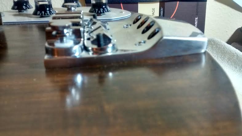 More pics.... FYI the pick guard and truss rod cover are "parchment colored and where accomplished with......................................adhesive backed shelf paper lol