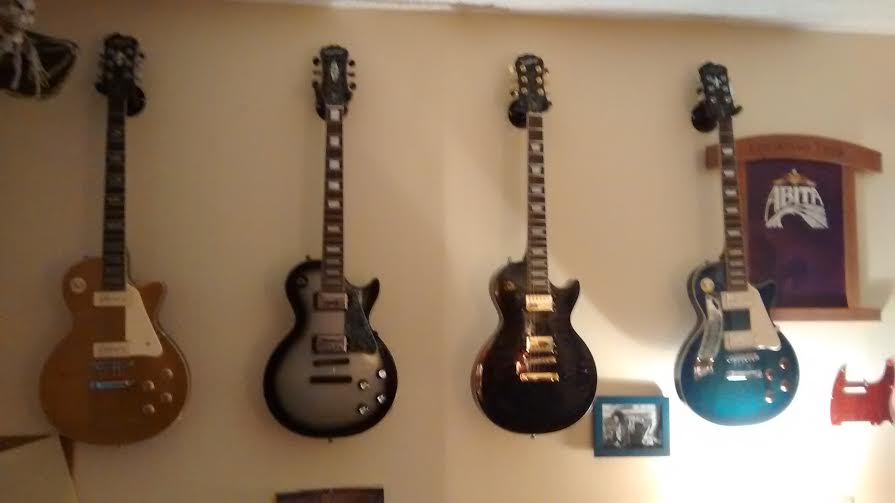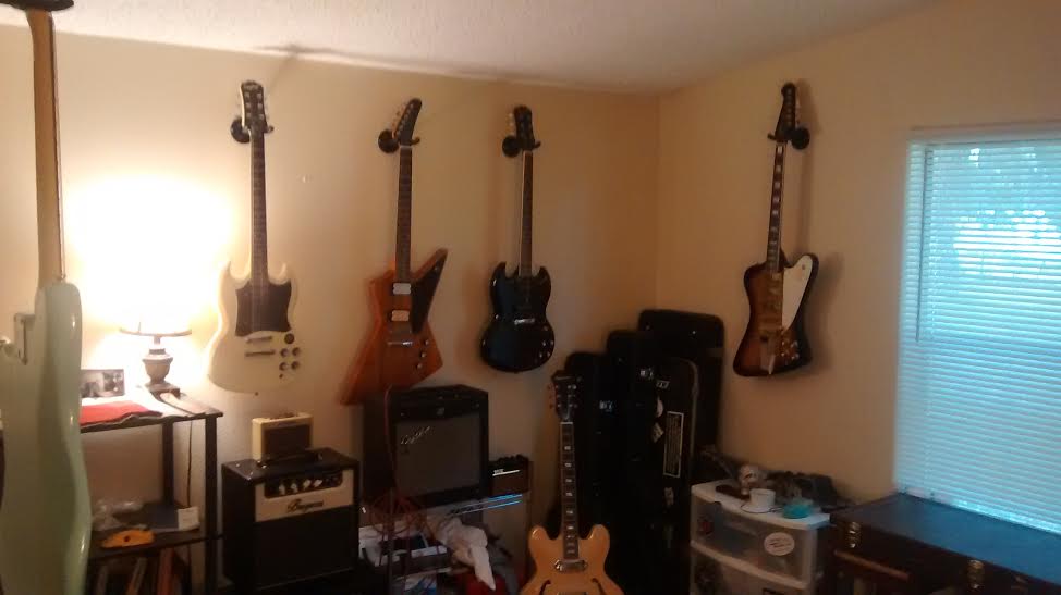 HEre are some other shots of the office.......critters come and go around here......so some (Like the Epi SG --black--with p90's is gone)