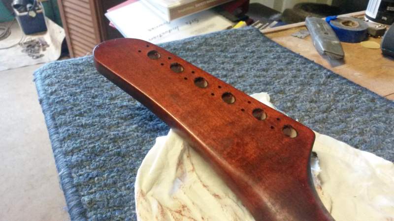 Thanks Wokka, its red mahogany colourtone stain. I've masked off the heel of the neck to make sure no stain/ tru oil got into where it will be glued. I'll check those distances when the oil dries. Thanks for the heads up !!