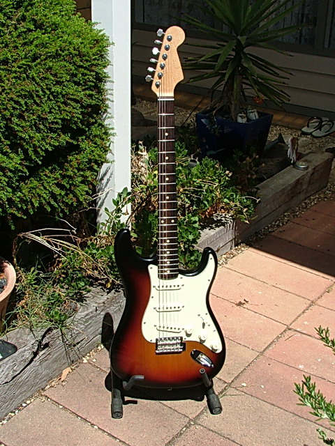 Rory Gallagher is my fav guitarist of all time and he didnt need any fancy frills just a strat and an amp pretty much and its the way i like to setup and play.This guitar is loosely modeled on Rory Gallaghers strat and being a blues blues/rock player myself i wanted the sound and looks to be vintage, hence a late 50's early 60's outlook. I did alot of homework and many late hours on the net looking for parts, not buying anything unless it was an absolute bargain. Netty as the project was called, and if i could make it work, would be constructed by only purchasing the parts over the internet and the cost had to be kept <$1000 aussie (which was achieved).The Aussie Dollar compared to the U.S at the time was .98c today its .72c