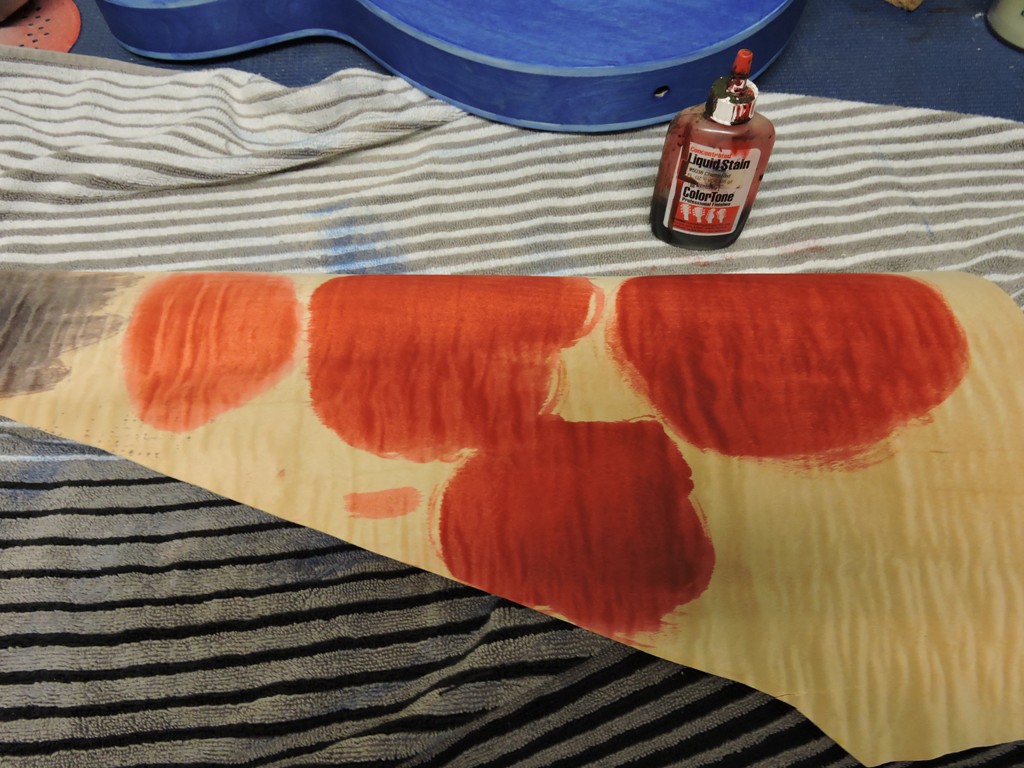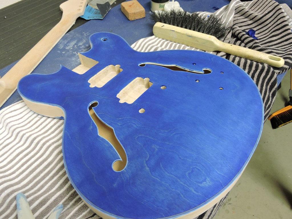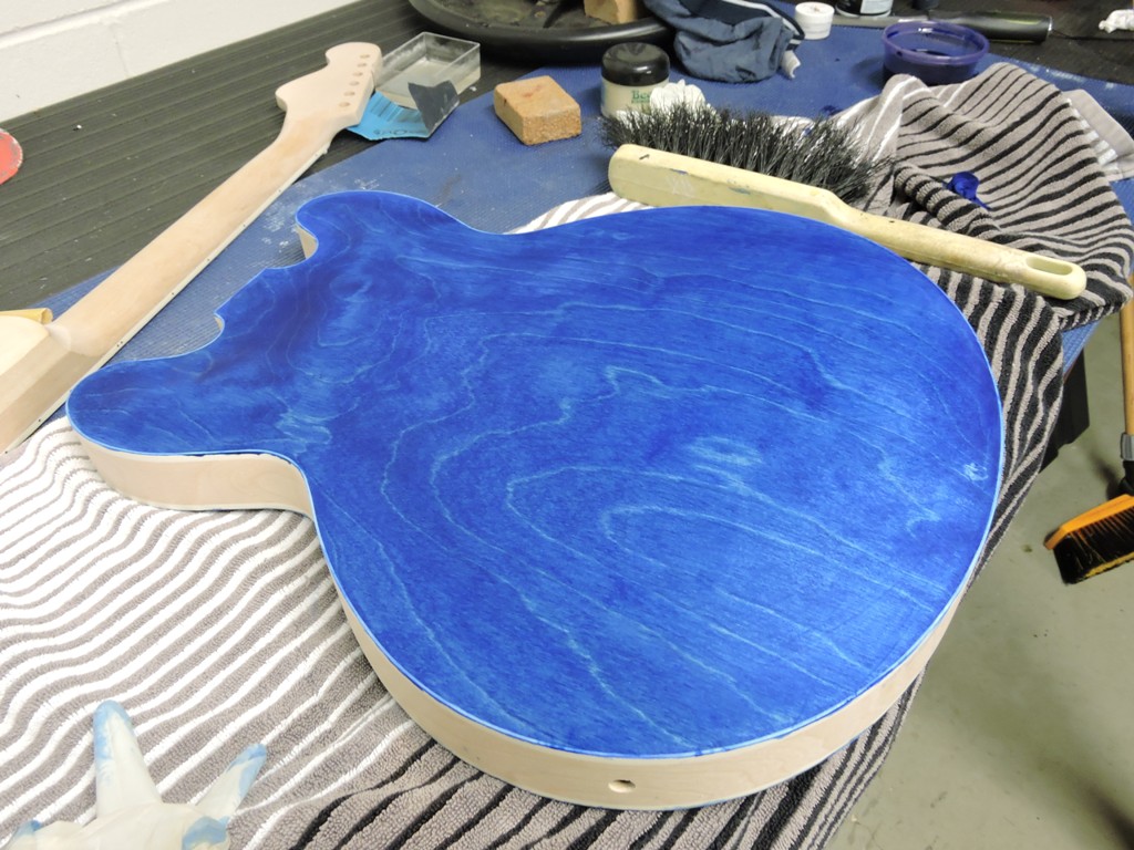 Really happy with the grain and had originally thought of a vintage amber with subtle tobacco burst but blue is what we are going with.