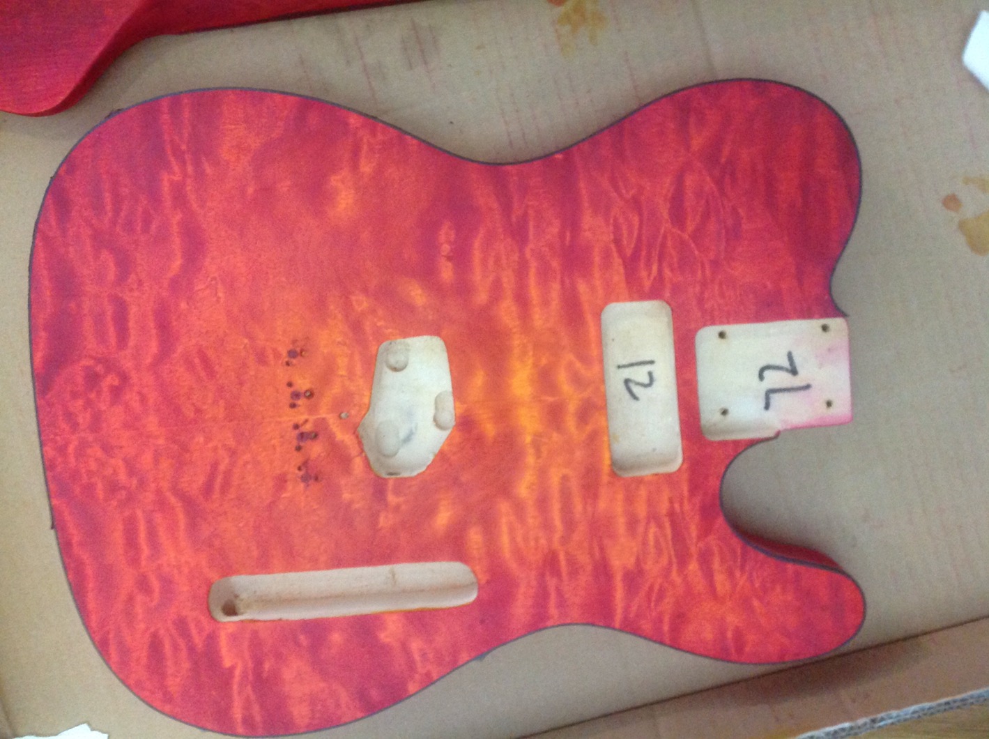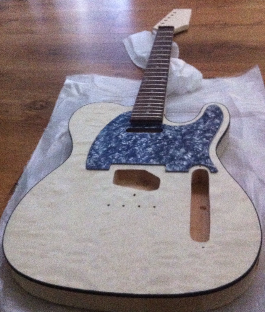 As it states above not really a build diary just a couple of pics here and there. Started a build for my nephew. Now my daughter wants one too lol. Did away with the pickguard, tried to conceal holes will see how that goes if not they'll be hidden another way.