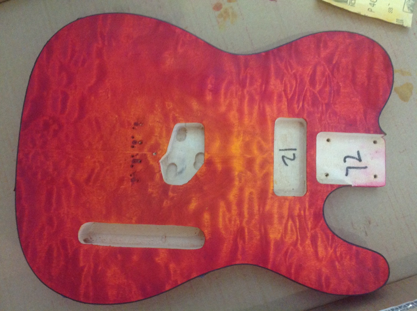 scratch end grain pine tele - first clear coat on !