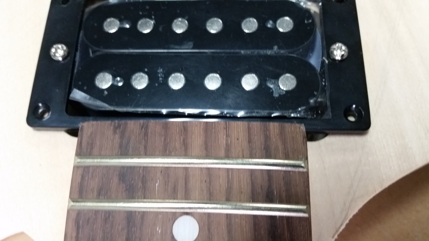 Filled in the now open end of the control cavity. Being my first attempt at this much modification I left the switch location as a point of reference, also made it easier to plan the new control cavity.