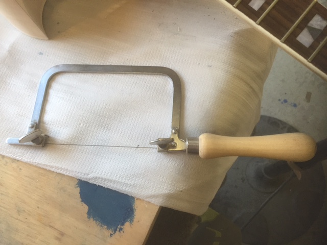 You need some Jeweller Blades. These are the ones I get from StewMac. As you can see they are very thin. Comes in pack of 10. And they have around 50 to 60 teeth per inch that you will use to cut on the DOWNstroke.