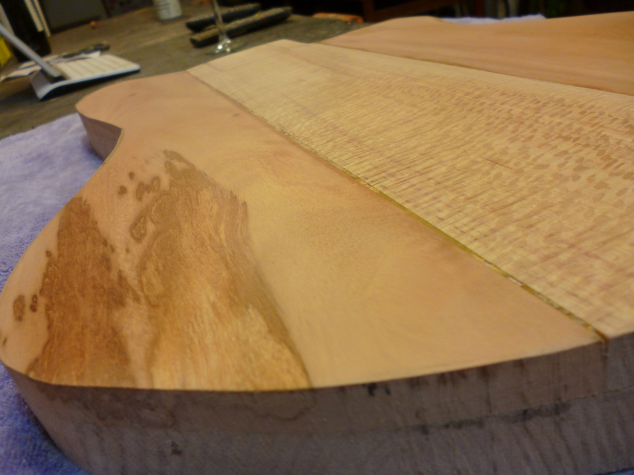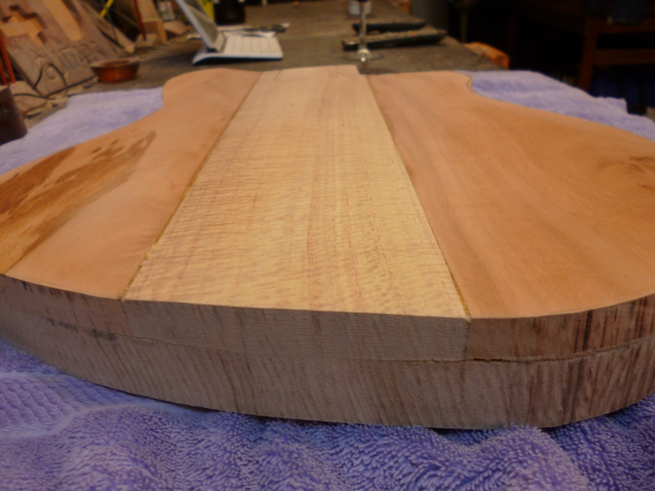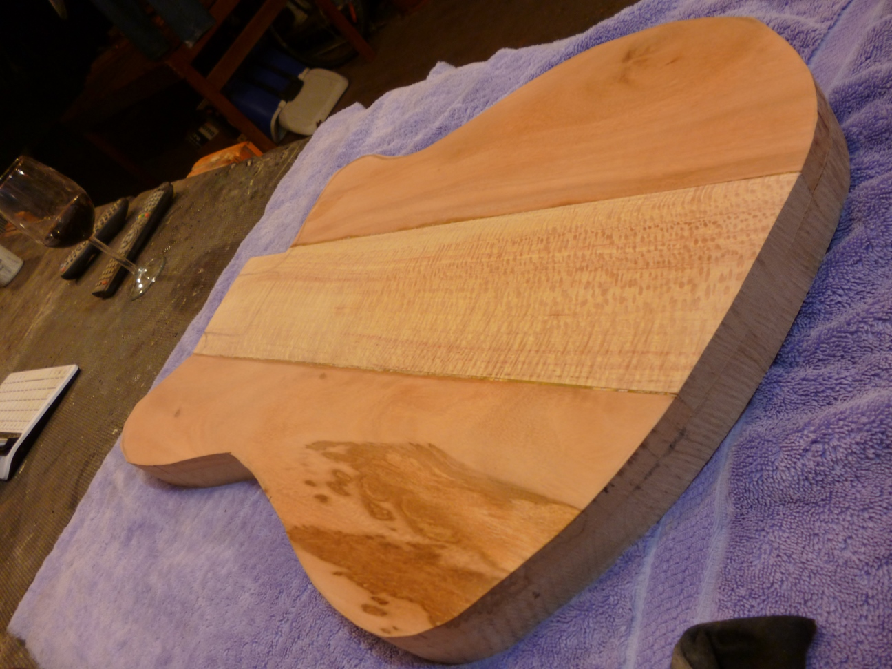 After a visit to a local timberyard and some tips from DB I've attempted my first drop top build and some tasty silky oak centre and rose gum flanks over tazzy oak pretty happy how its shaping up after a rough bandsaw. My damn printer ran out of ink so I've taken the shape from a tablet by eye. Will print an accurate plan at work Monday and cut the final shape.