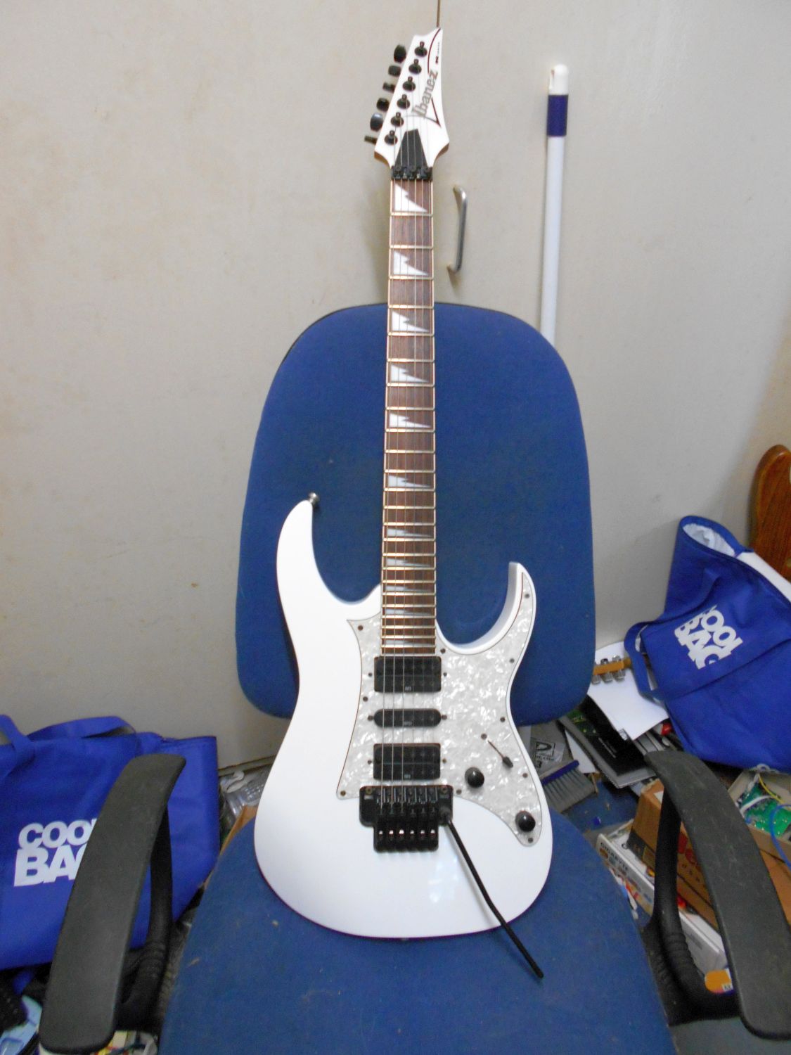 My latest guitar acquisition, a White Ibanez RG350DXZ Electric Guitar.