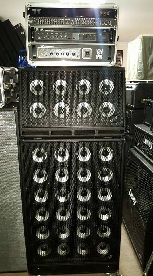 What's the ohm rating of the 24x5" cab? I can't see it on the PJB website. The minimum ohm rating for the Ampeg B2 amp is 4 ohms. The 8x5" is 8 ohms, so the 24x5" needs to be 8 ohms or greater to keep the combined impedance above 4 ohms. However , the 24 x5" arrangement may be less than 8 ohms, in which case it's not a good set up for the amp. So find out and we can talk about it again.