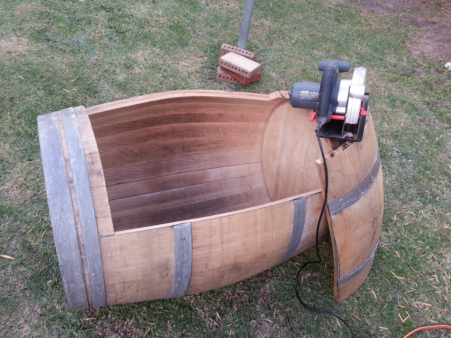 Barrel 3 we have cut the door, looks great, we will have a crack at putting hinges on tomorrow, got to love public holidays !