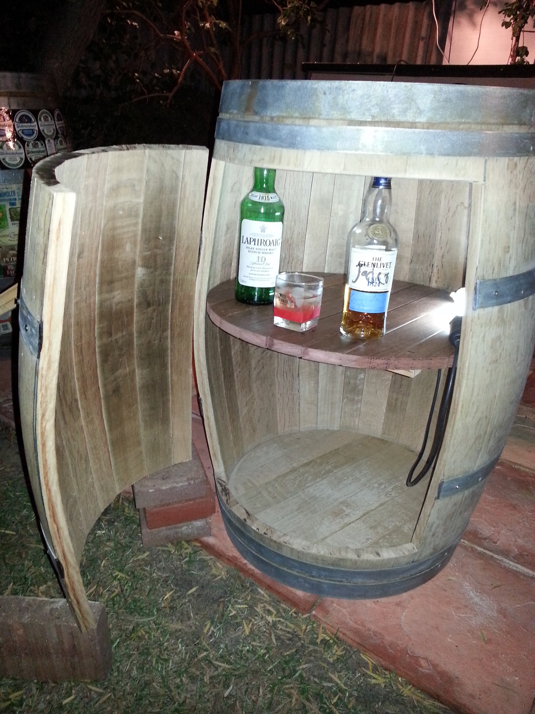 Also got a nice surprise it was a white wine barrel so the oak is clear inside - we also built the shelf so will fit that