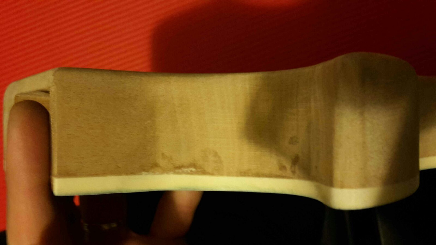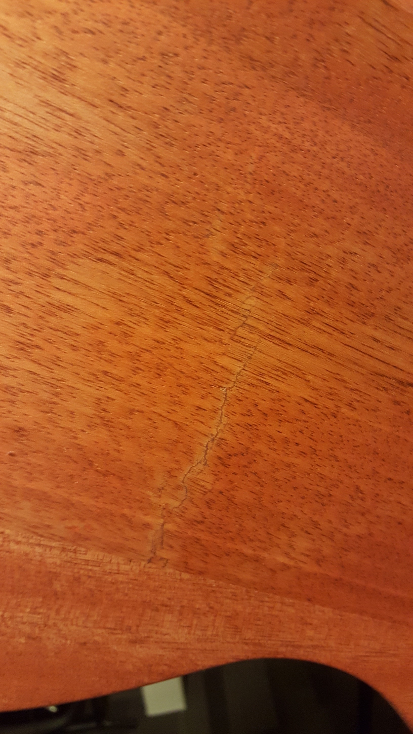 I've got also some spot of glue (I guess) on the edges of the body. The spots look like to be deep into the wood...
