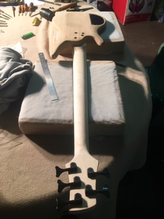 -3) I've had a few issues with one particular neck bolt (now snapped twice), all the other screws have been pre drilled and gone in fine, however this one particular screw also pre drilled just kept snapping, re drilled it a few times also but again it snapped, still have no idea what caused this but its fixed now with all 4 screws in. luckily i have a music shop within 10min of my home that has a range of supplies and was able to (twice) go and pick up some new screws etc.