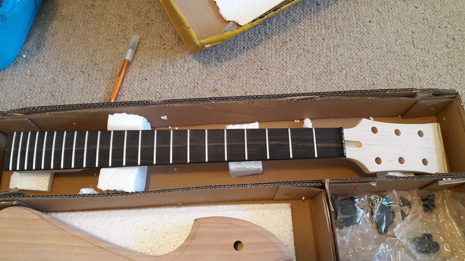 There are a couple of little gripes I have with the kit, the neck pocket is on the large side, asking for no inlays resulted in no side dots, and the glue joins in the body are a little thick. Of course all of these can be worked around (well the glue will just be painted over so no visual damage done there) but it does add a bit more work to it.